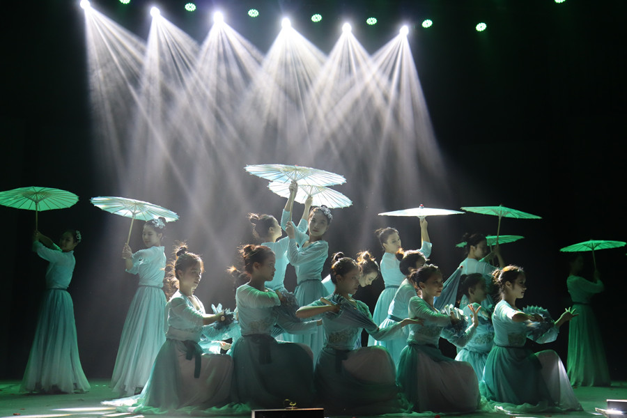 聚光灯洒下,轻柔平和的音乐响起,BEAT365英国官网舞者们手执纸伞,以一席青衣缓缓入场。轻盈灵动的舞姿,绘出一幅动人的江南雨涧春行图。《雨涧春行图》呈现出一幅江南女子在春雨中、山涧里翩翩起舞的灵动画面,整齐有序的舞蹈动作让观众从舞动中看到了万物生长、生机勃勃与充满希望的景象。