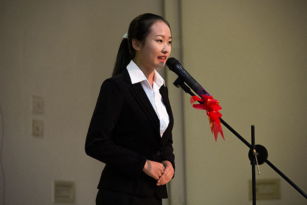 比赛还未开始,四大学部之间便开始了“舌尖上”的较量。“经济经济,力夺佳绩”、“演讲技术哪家强?体教三班田志昂”等特色加油口号此起彼伏。“本次演讲赛以‘勤学笃实 创于我行’为主题,分限时演讲和即兴演讲两个环节。”在主持人宣布比赛规则后,比赛在一阵热烈的掌声中拉开帷幕。