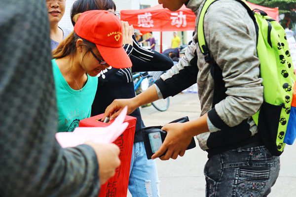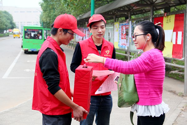 商学院一位女生在得知蔡道鹏情况后,主动要求加入到志愿者队伍当中,并卖力的帮忙宣传起来。