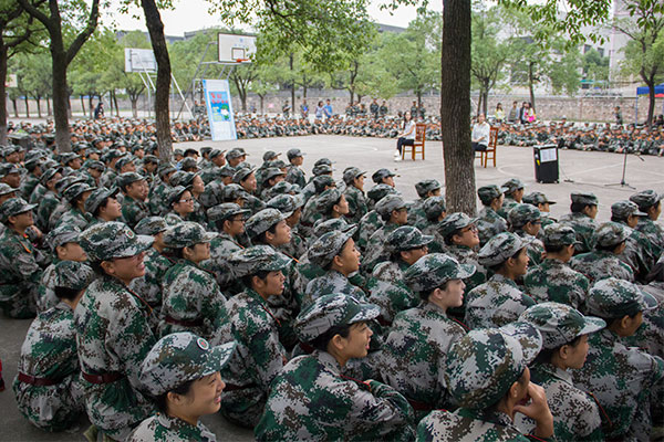 随着各排排长一声“坐下”,25个排的军训新生围成一个圈。身体挺得笔直,眼神里写满了期待。首先映入眼帘的是双人舞《青花瓷》,灵活挥舞的扇子,曼妙的舞姿伴随着轻柔的旋律,别有一番醉人之意,动人的爵士舞蹈《red light》,热烈而让人心动。