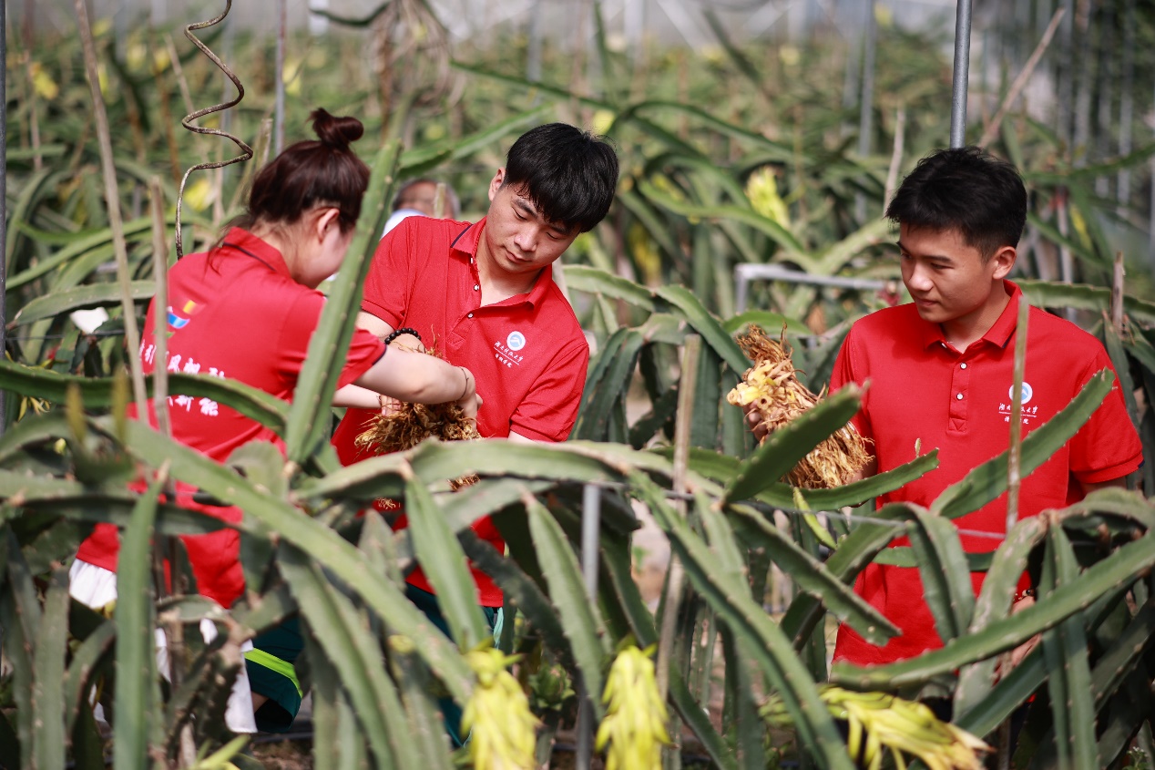 为加强对学生的劳动教育、协助果农增产增收、助推木脚村当地农业发展,7月6日上午,BEAT365官网“青年红色筑梦之旅”实践团成员随指导老师罗茜、钟纯一同行至木脚村火龙果种植基地,身体力行,协助果农梳理未成熟火龙果枯萎残花。