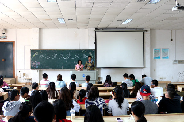 随后,各学部办公室代表分别介绍了各学部办公室委员的分管工作及其主要任务。人文社科体育学部代表徐诗思总结了本学部所取得的工作成就,并坚信以后会越做越好。机电学部代表宋来强表示:“一个优秀的办公室委员应懂得如何向老师推销自己,协助老师的工作。在工作中,委员要注意谨言慎行。”经济学部代表周俊年道出:“本部门以团结协调、专心、细心和耐心为宗旨,为学生会贡献自己的一份力量。”土建艺术学部代表宋俊蓉强调了关于学习与工作、干部与委员关系处理方法的重要性,秉承着坚持到底的原则,将“既然选择了,就好好走下去”付诸实践。